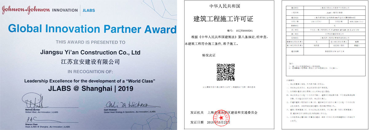 JLABS@Shanghai項目是全球著名醫藥公司強生創新與上海市政府、浦東新區人民政府和上海張江集團有限公司攜手建立的亞洲第一個創新中心。江蘇宜安建設有限公司作為該項目的總承包單位。 基于我們一絲不茍、精益求精的工匠精神,宜安建設最終被強生評定為全球創新伙伴,該工程被強生總裁評定為全球優秀標桿示范性項目。